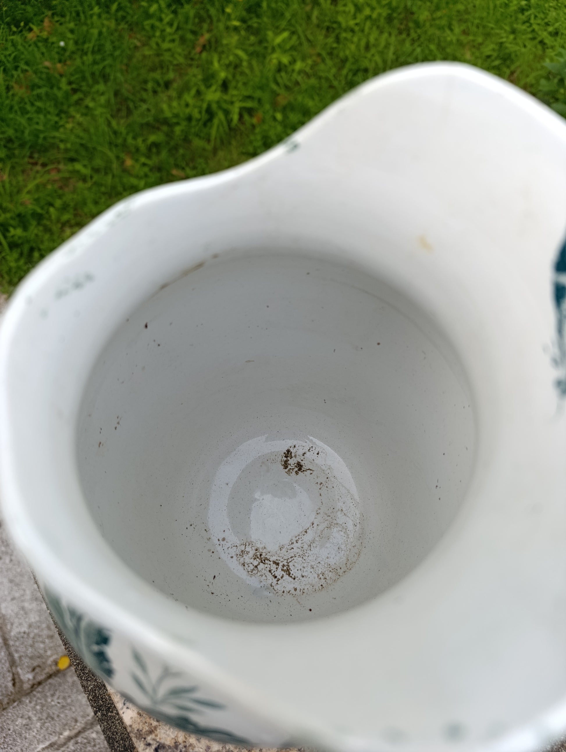 Charmant pichet ancien en faïence blanche décoré de motifs floraux vert foncé, typique des productions françaises du début XXe siècle. Sa belle patine, son bec verseur élégant et sa contenance généreuse en font une pièce idéale pour une déco vintage ou champêtre. À détourner en vase ou simplement à exposer.
