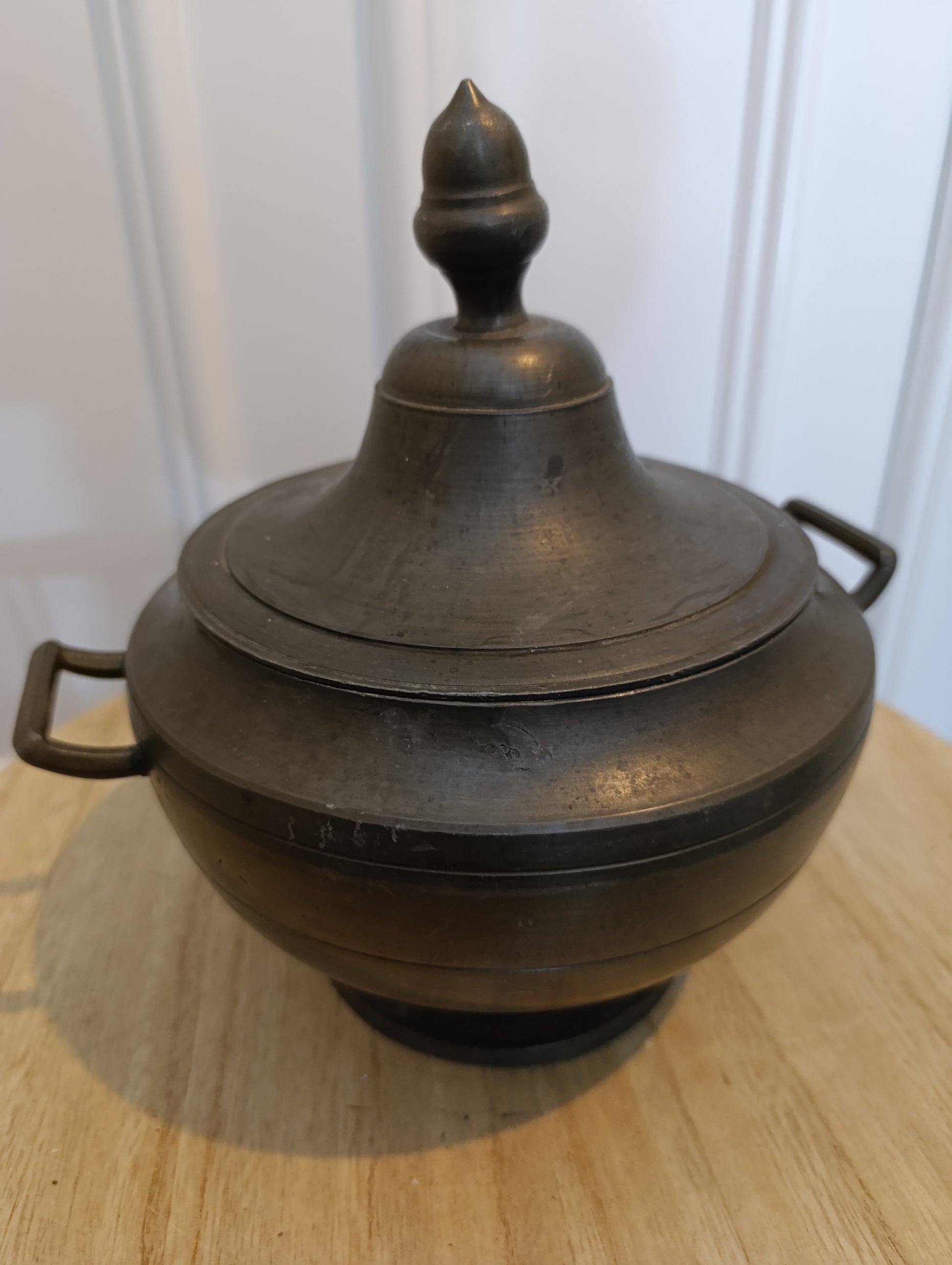 Ancienne soupière en étain avec couvercle – 1,8 kg