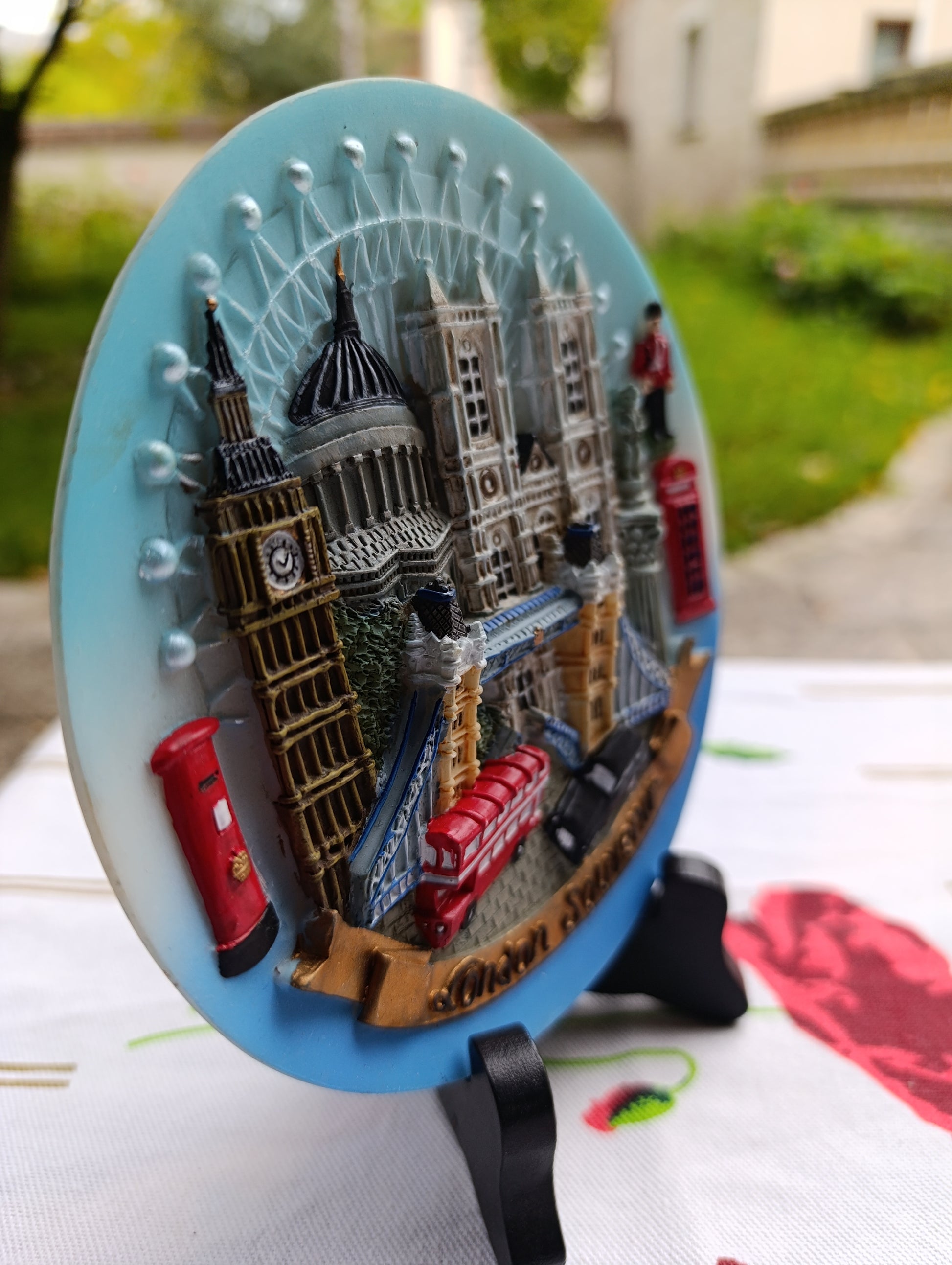 tags : london souvenir, déco angleterre, assiette 3D, big ben, tower bridge, bus rouge, cabine téléphonique, collection voyage, city décor, souvenir londonien