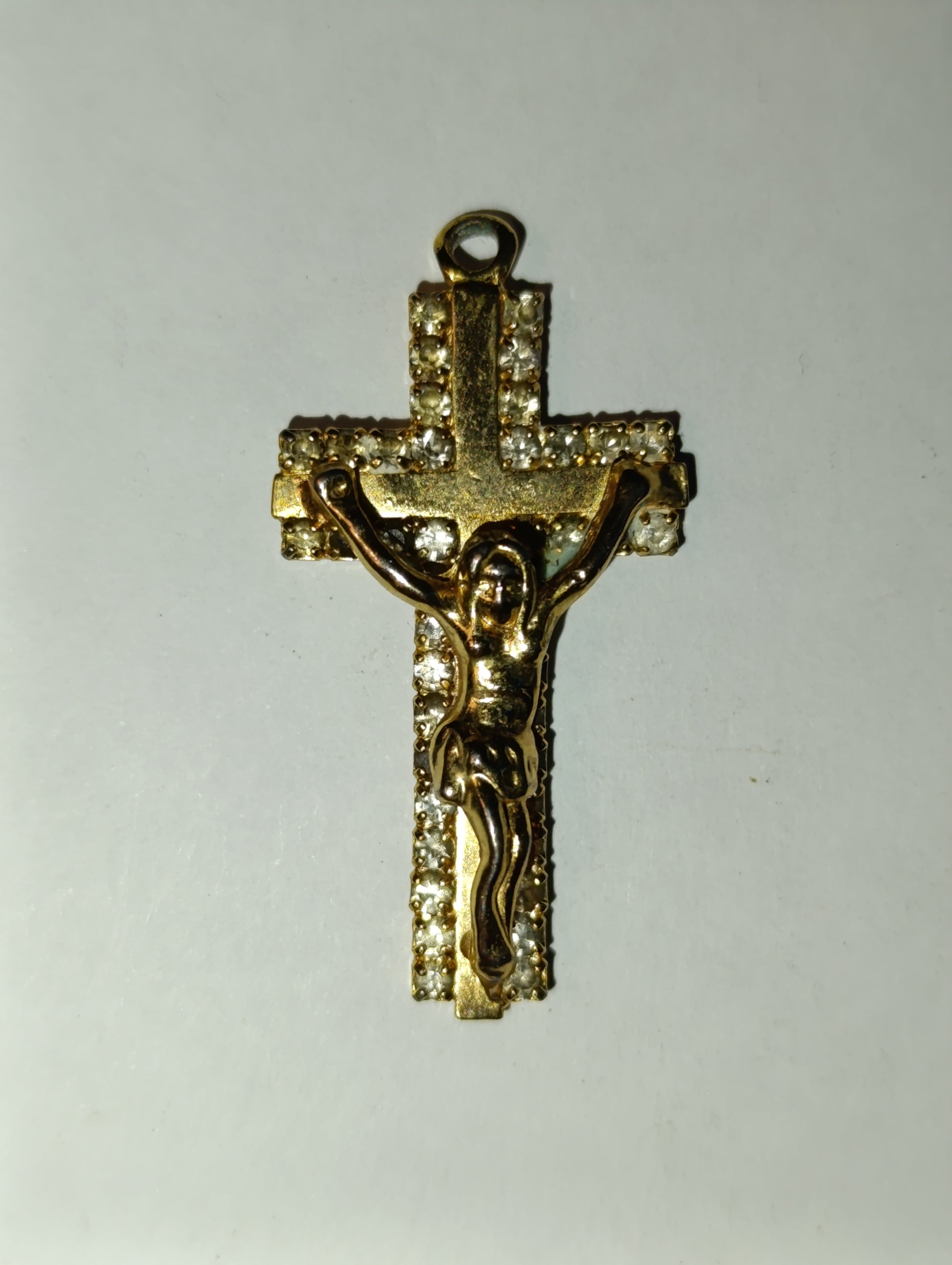 croix crucifix pendentif religieux vintage bijou ancien métal doré strass bijou fantaisie collection religion