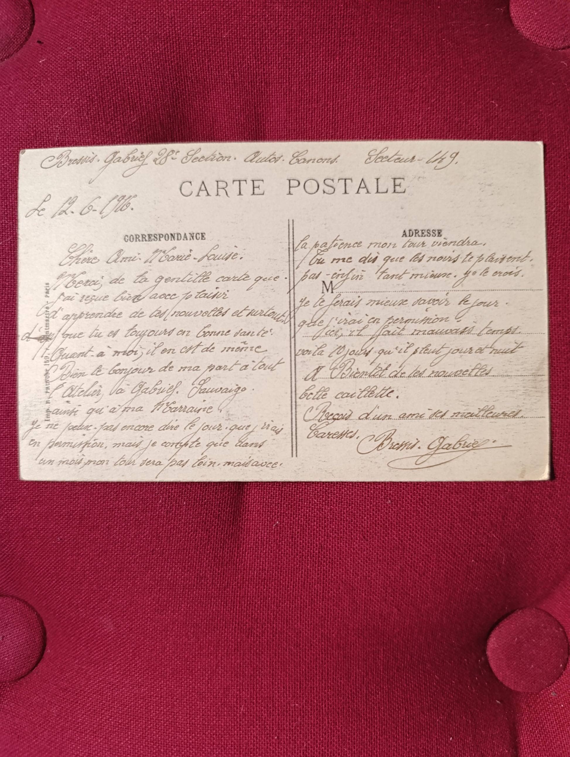 Carte postale ancienne originale de la Première Guerre mondiale montrant un coin du fort de la Pompelle en Champagne après les bombardements. Vue des murs éventrés et talus endommagés, présence humaine donnant l’échelle des destructions. Carte écrite et datée au dos (1916), longue correspondance manuscrite bien conservée, belle patine d’époque avec usures normales liées à l’âge. Document historique authentique, recherché pour la bataille de Champagne et les fortifications autour de Reims.