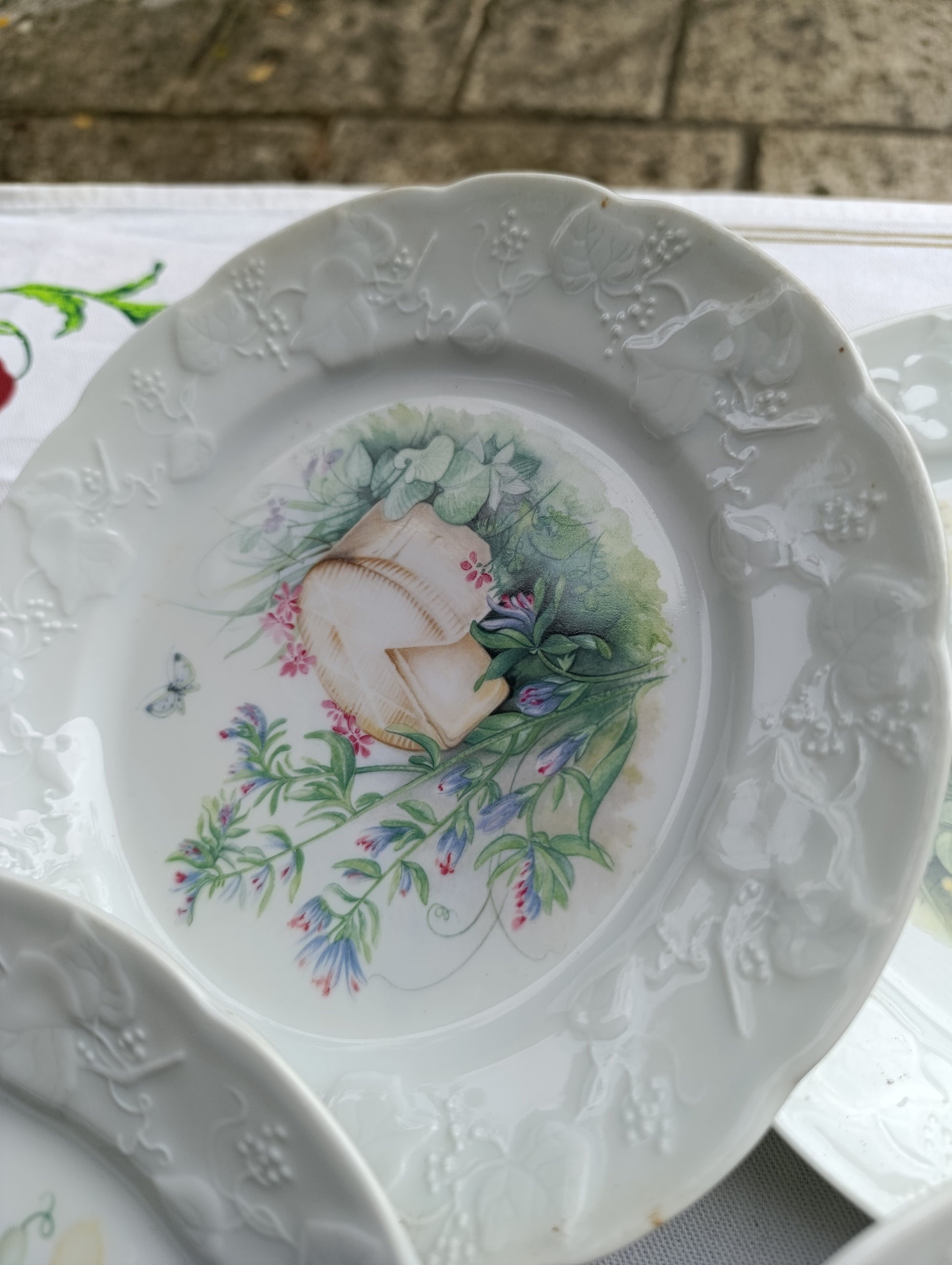 assiettes porcelaine, limoges, herbes sauvages, vaisselle vintage, assiette décorative, porcelaine française, service à fromage, déco cuisine, collection vaisselle, CNIP