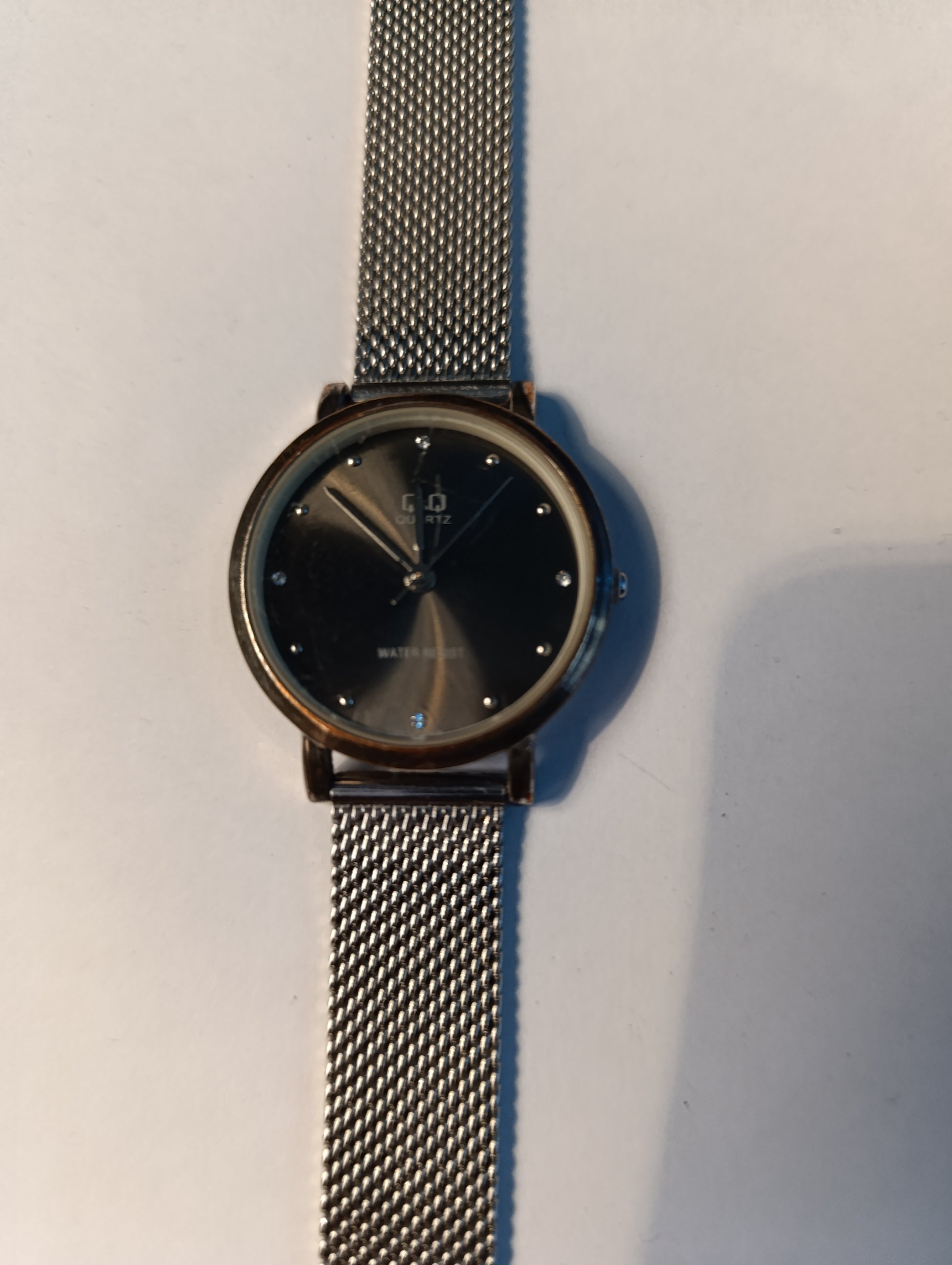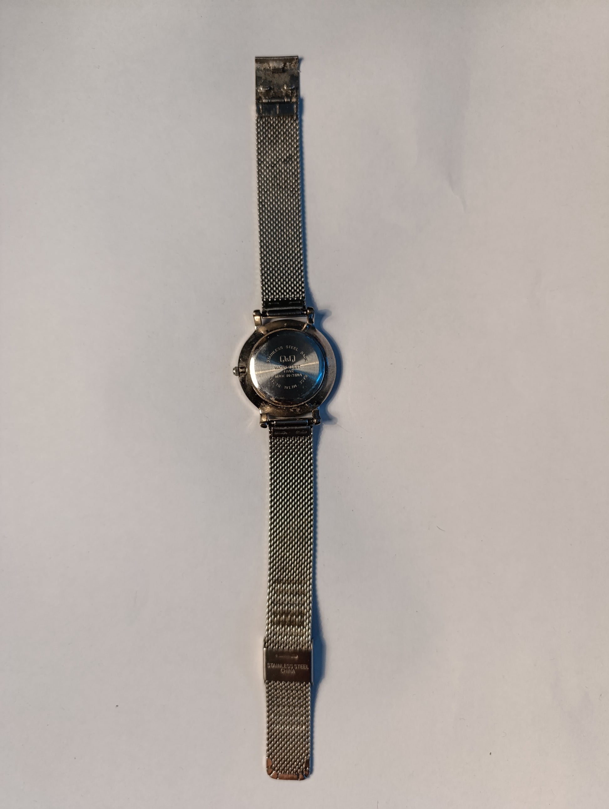 Montre élégante et sobre de marque Q&Q, idéale pour un style chic et discret. Modèle à mouvement quartz, entièrement fonctionnel, la montre fonctionne actuellement sans remplacement immédiat de pile (pile possiblement en fin de vie à anticiper à terme).