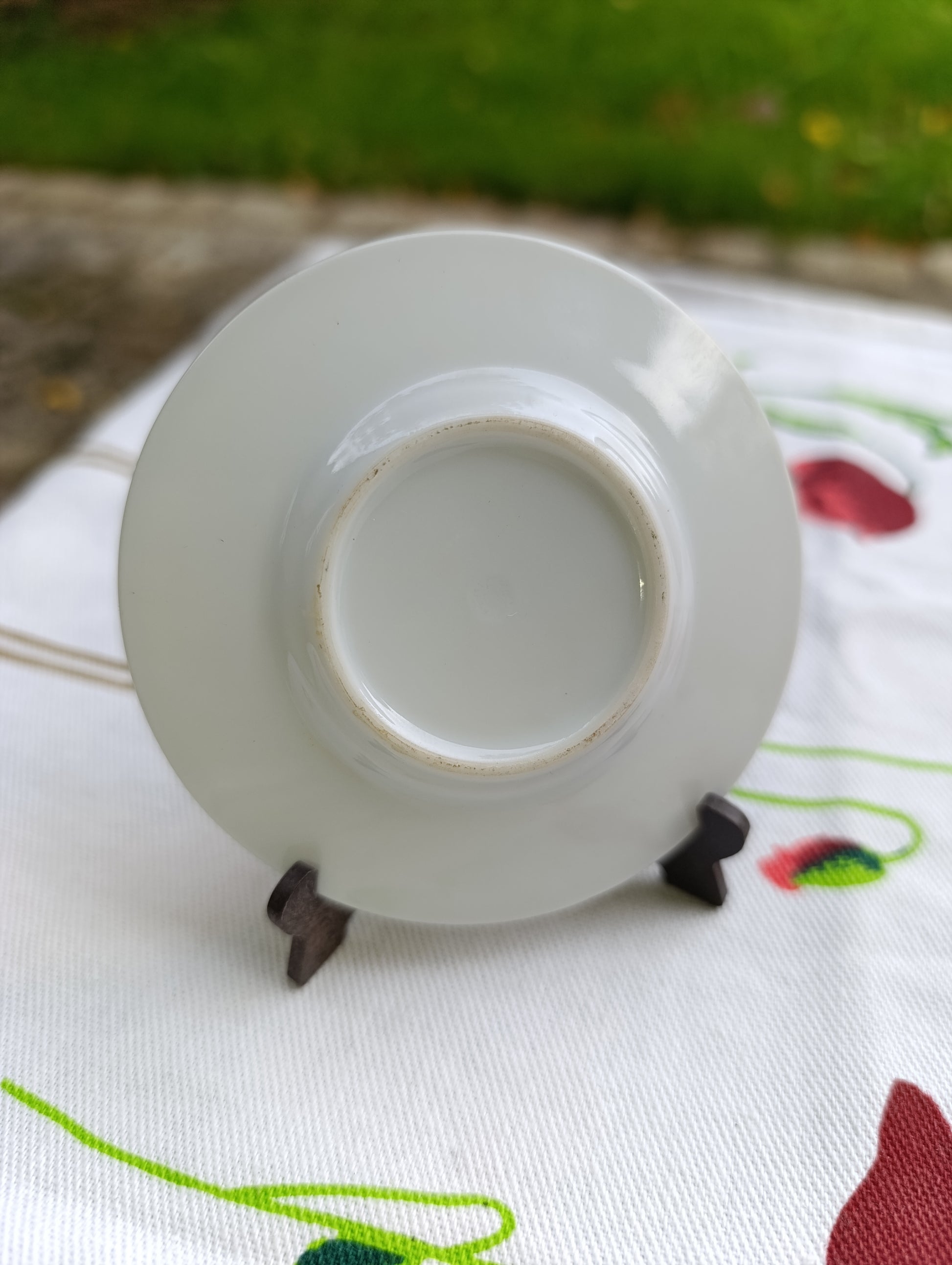 Ravissante assiette souvenir japonaise en porcelaine fine, décorée au centre d’une incrustation dorée représentant le célèbre Pavillon d’Or (Kinkaku-ji) à Kyoto. Bordure dorée brillante et double cerclage fin sur fond blanc. Travail délicat et raffiné, typique des souvenirs japonais de qualité. Diamètre 9 cm.