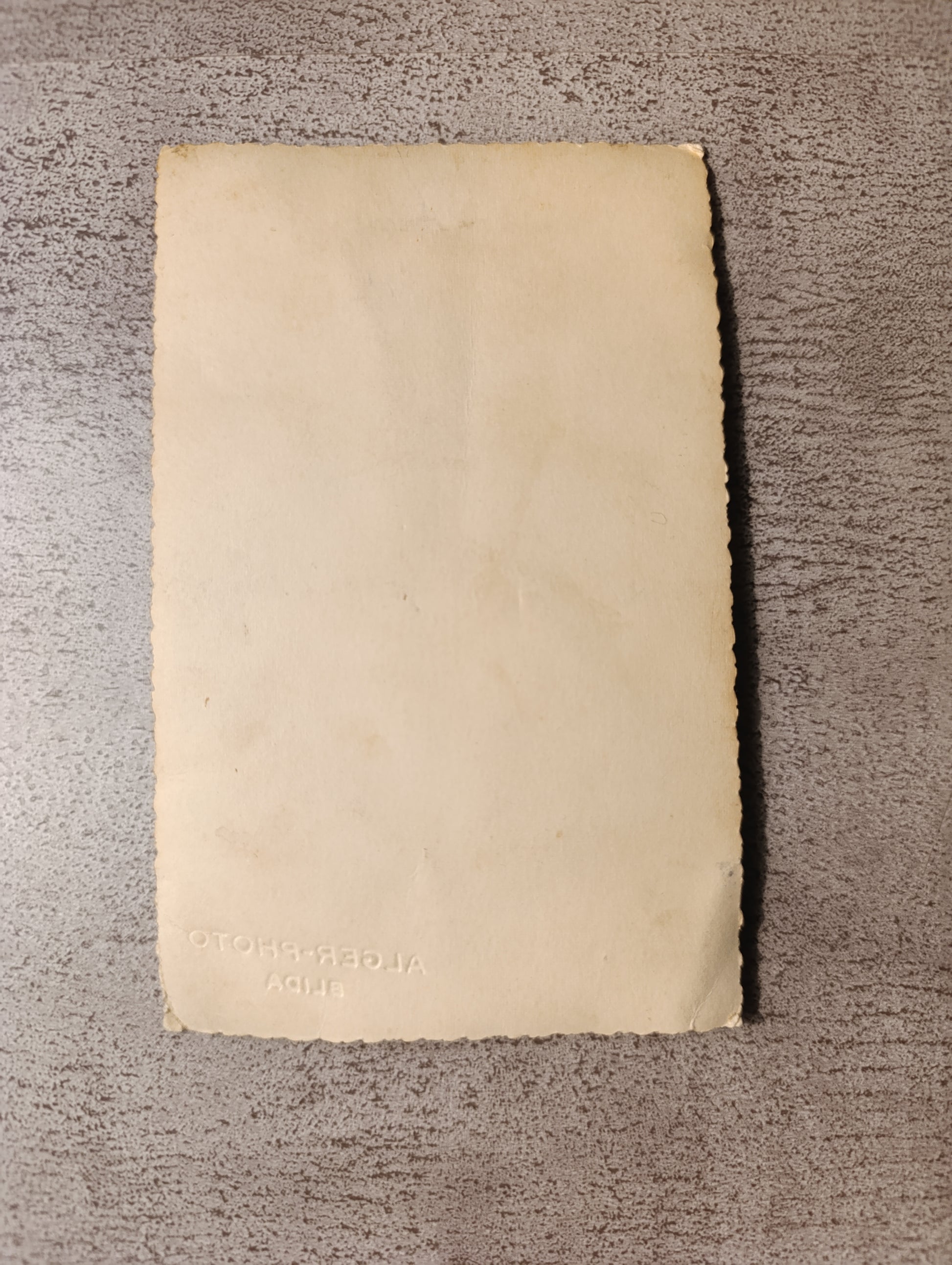 Photographie ancienne noir et blanc représentant un aviateur en uniforme, probablement Armée de l’Air française. Tirage d’époque avec bords dentelés, mention du studio Alger Photo – Blida en bas. Format env. 14 x 9 cm. Belle patine du temps, petites marques et usure sur les bords, cohérentes avec l’âge. Pièce authentique, intéressante pour collection militaire, aviation ou histoire coloniale française.