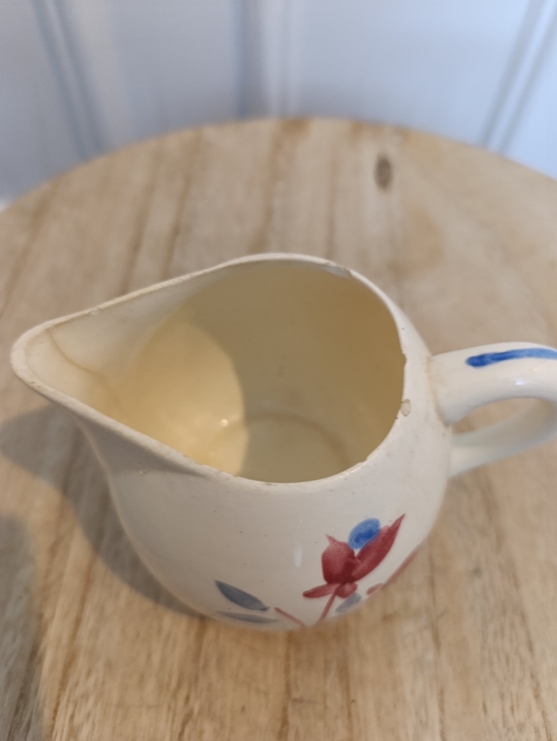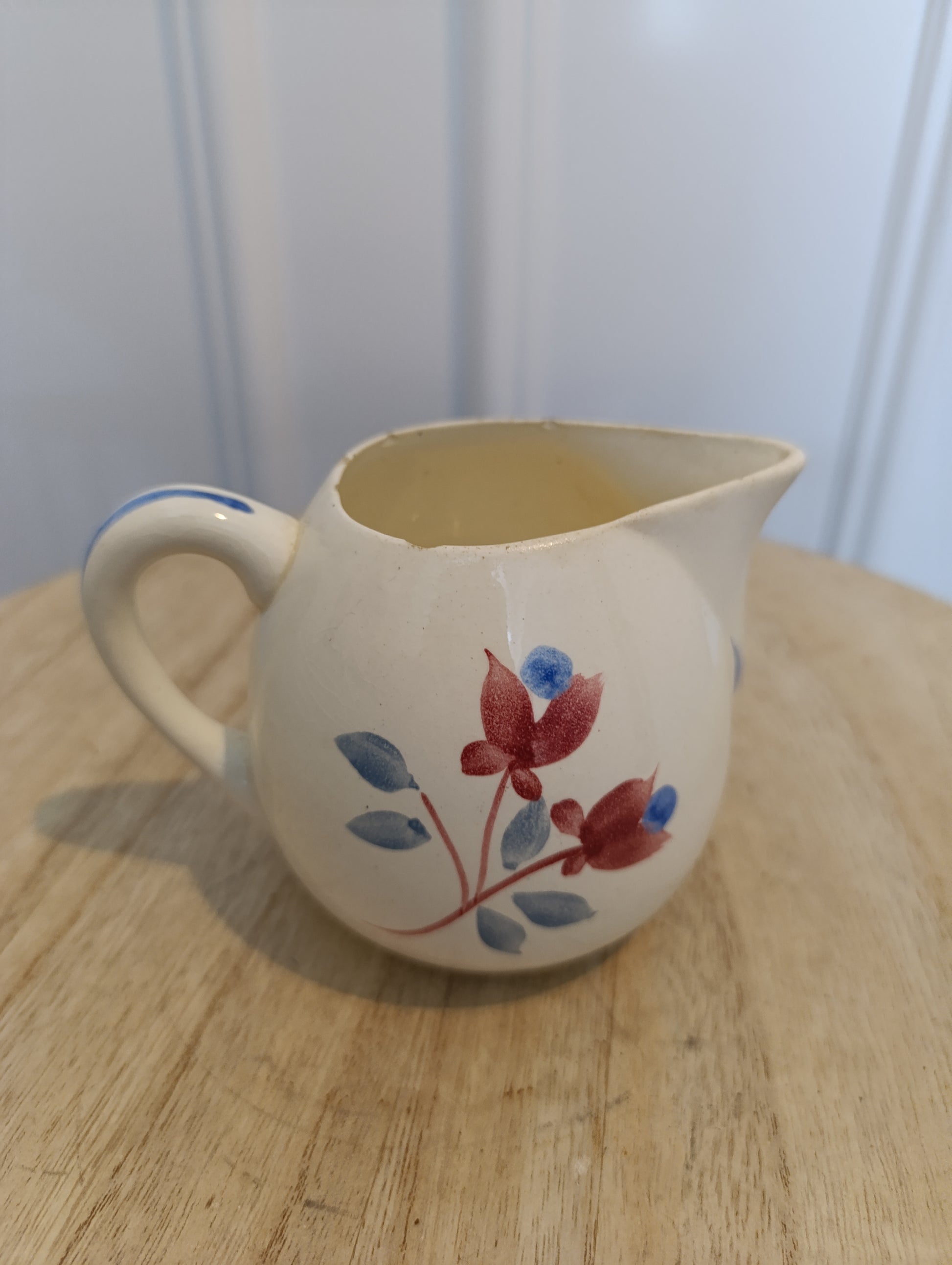 Pichet ancien Agnan en faïence décor fleurs rouges et bleues