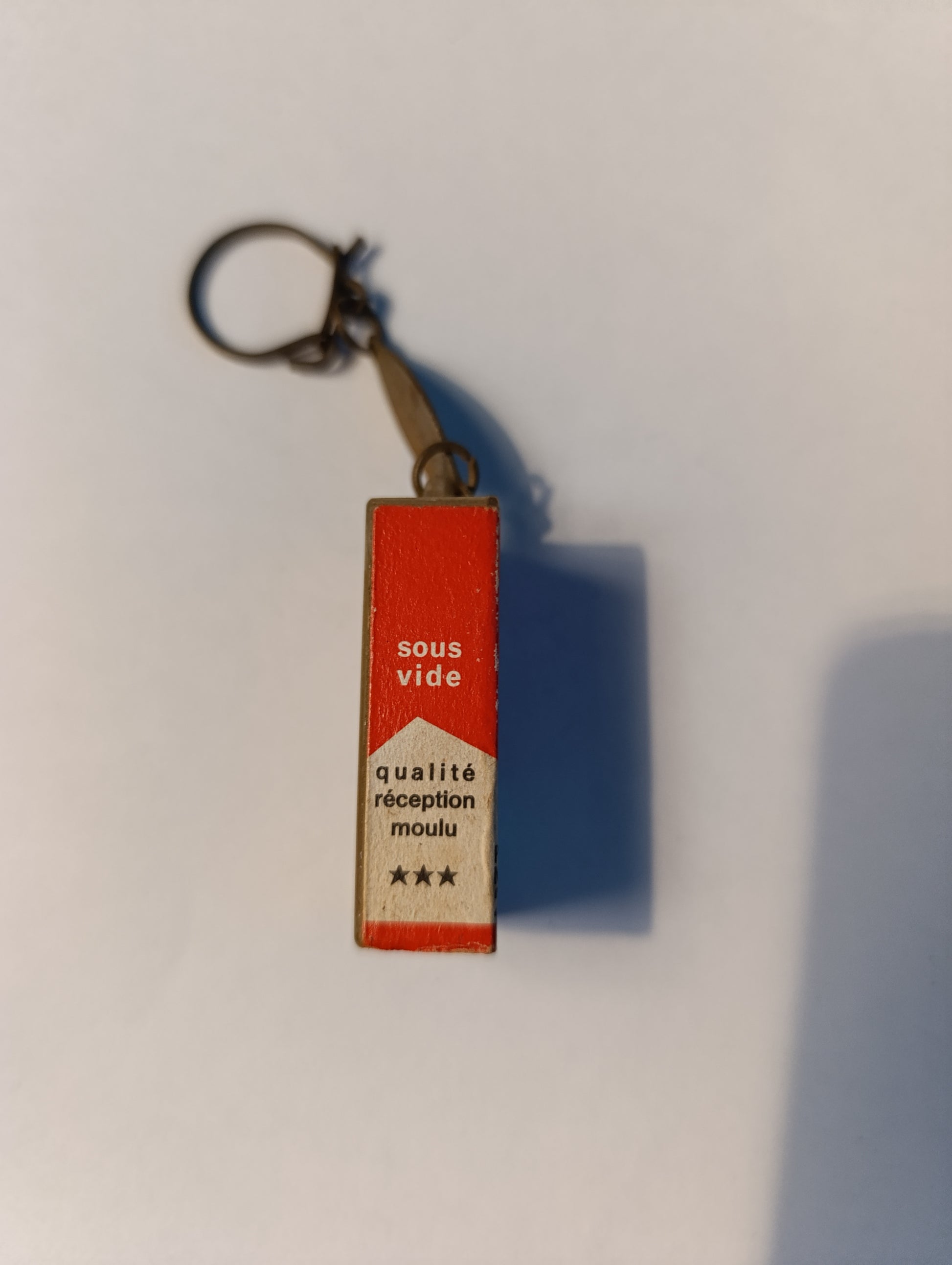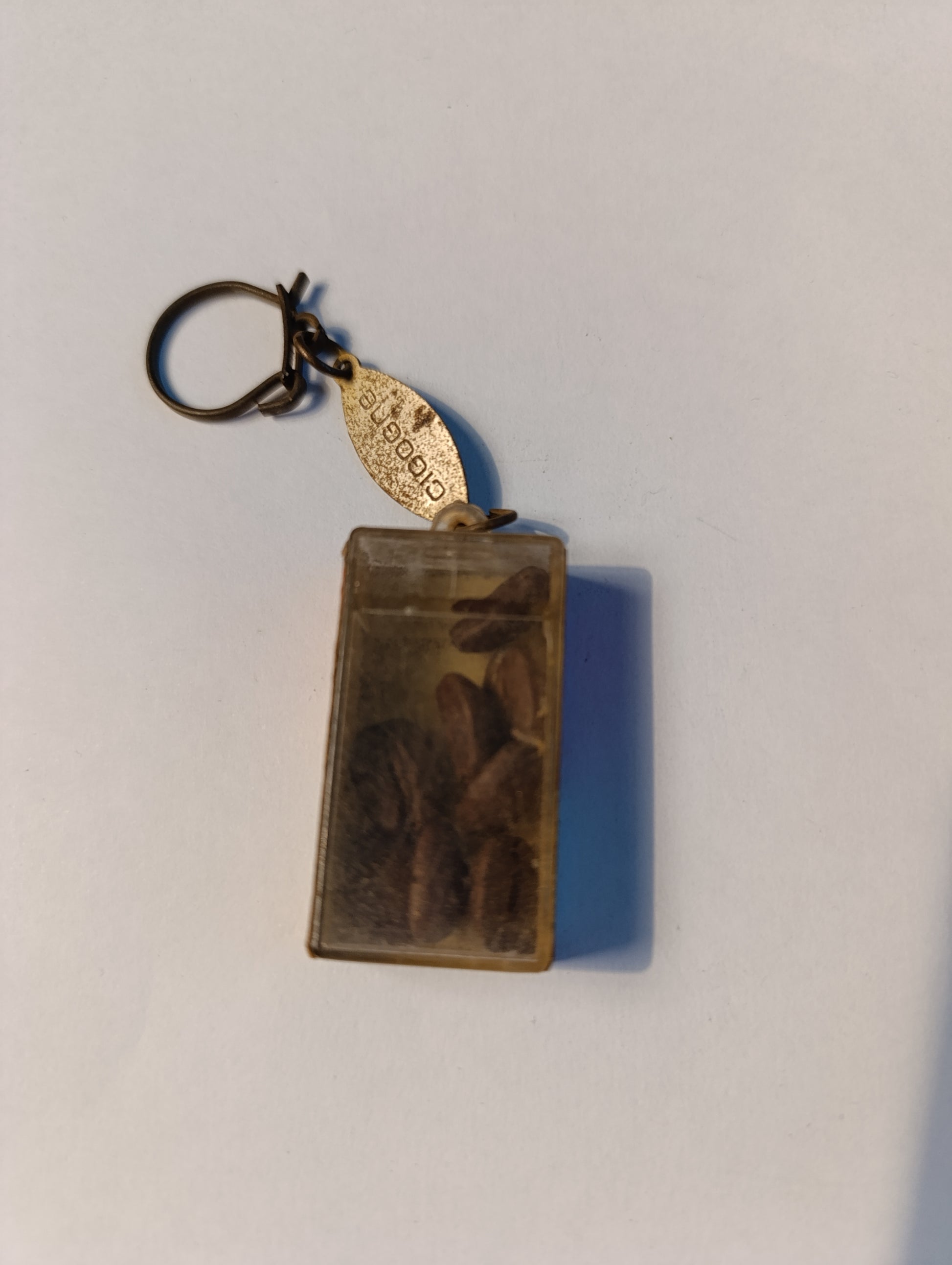 Porte-clés publicitaire vintage Café Cigogne – boîte miniature avec grains