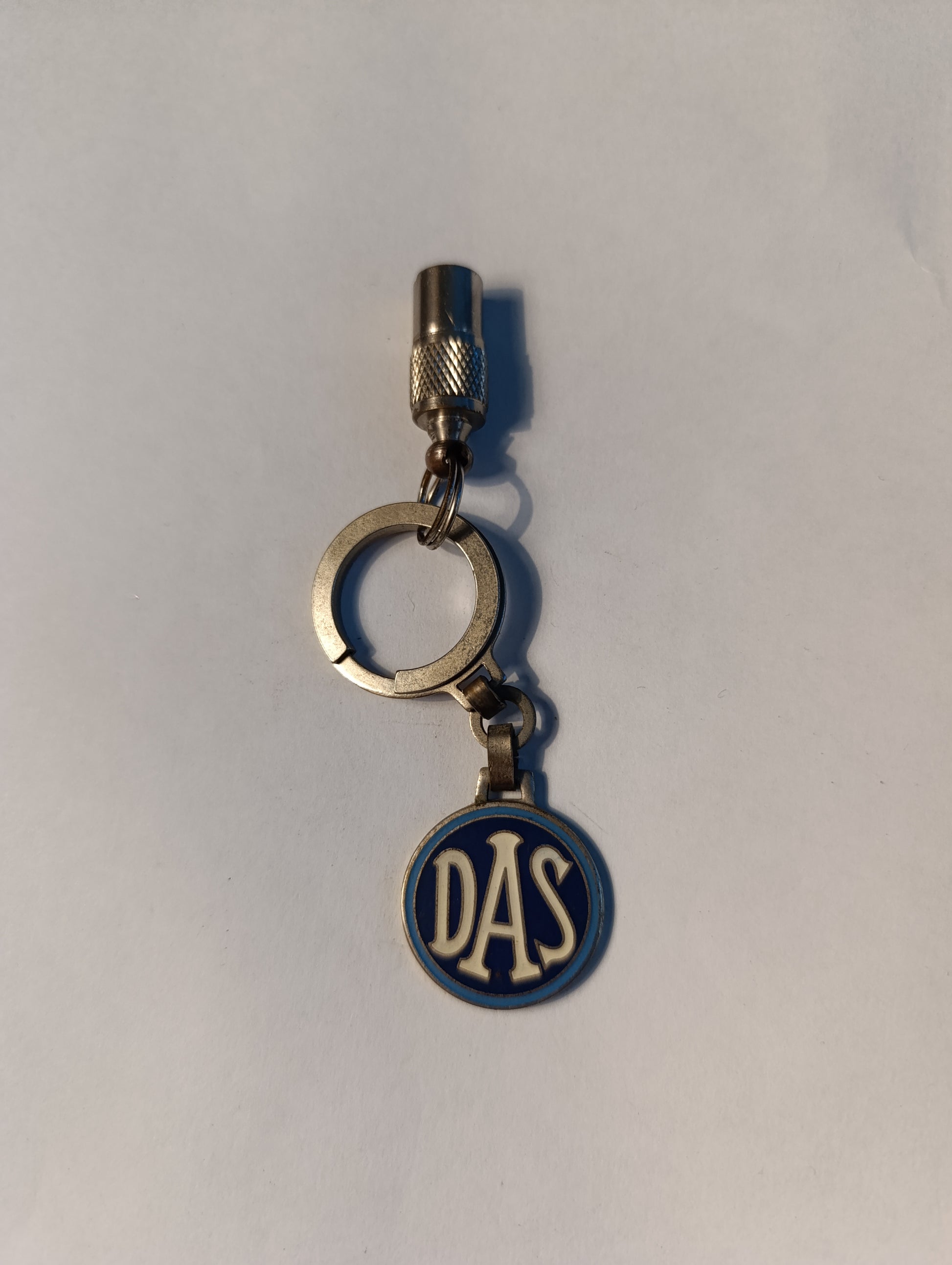 Porte-clés publicitaire vintage DAS émaillé bleu