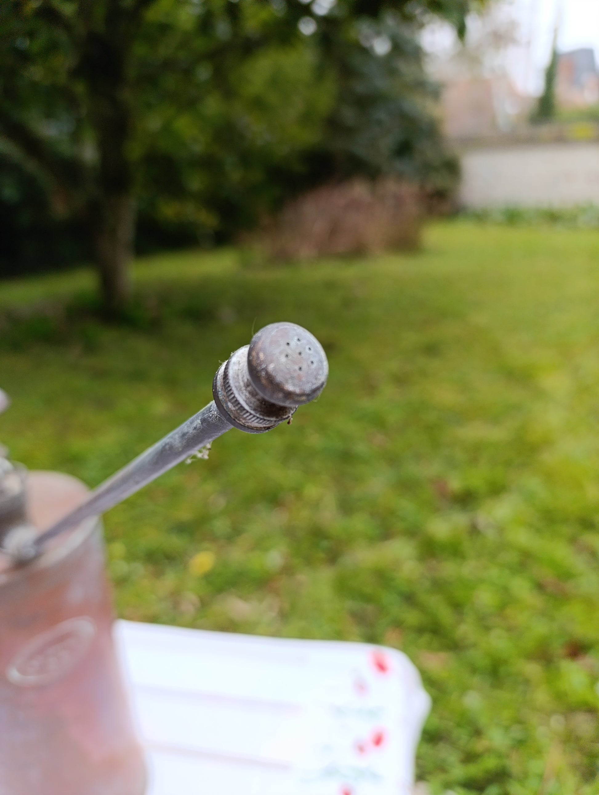 Pulvérisateur ancien en métal cuivre patiné – jardin vintage